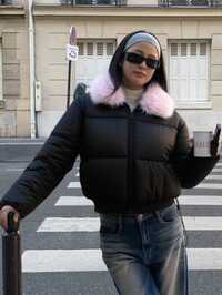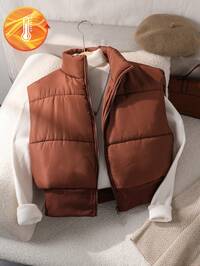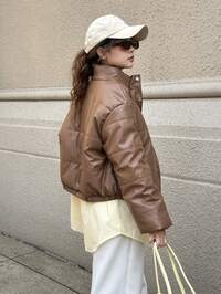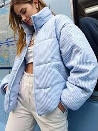 RomweezySHEIN Teen Girls' Winter Jacket, Black Long Sleeve Hooded Front Zipper Ribbed Cuffs, Thermal Lined, Casual Versatile, Suitable For Autumn/Winter, Outings, Shopping, Vacation, Commuting, Can Be Paired With Tops, Hoodies, Jeans, Sweatpants