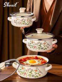 shoxil store1 Set Multi-Color Enamel Sealed Container Set, Provides 10/12/14/16/18 Storage Capacity Bowls For Preserving Fruits And Vegetables, Multi-Purpose Food Storage, Round Lid, Dishwasher Lunch Box, Fashionable Enamel Bowls With Lids, Soup Bowl, Salad Bowl, Enamel Fridge Container For School, Camping, Portable Picnic And Office, Round Lunch Box