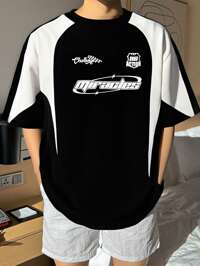 SHEIN Tween Boys Casual Korean Sports Color Block Splice Printed Round Neck Short Sleeve T-Shirt, Suitable For Commuting, School, Daily Casual, Sports, Spring/Summer