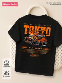 GraphicGems Tween Boy Tokyo Underground Racing Print Round Neck Short Sleeve Black Street T-Shirt, Summer Boy Clothes For Kids Young Boys T Shirts