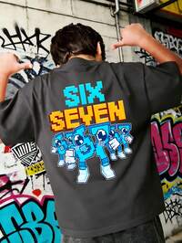SHEIN Tween Boy Casual Simple Short Sleeve Crew Neck T-Shirt, Suitable For Spring & Summer, Classic Cool Slang #67, Classic Cool Sports Element Graphic Print, Six, Seven