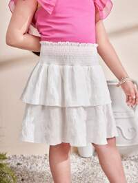 SHEIN Tween Girl Extended Size Casual Double Layered Ruffle Hem Mini Skirt