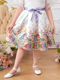 SHEIN DRMZ Tween Girl Tween Girl Extended Size Holiday Casual Spring/Summer Floral Printed Skirt