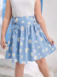 SHEIN Tween Girl Extended Size Casual Double-Breasted Skirt With Bow Decoration On Waist