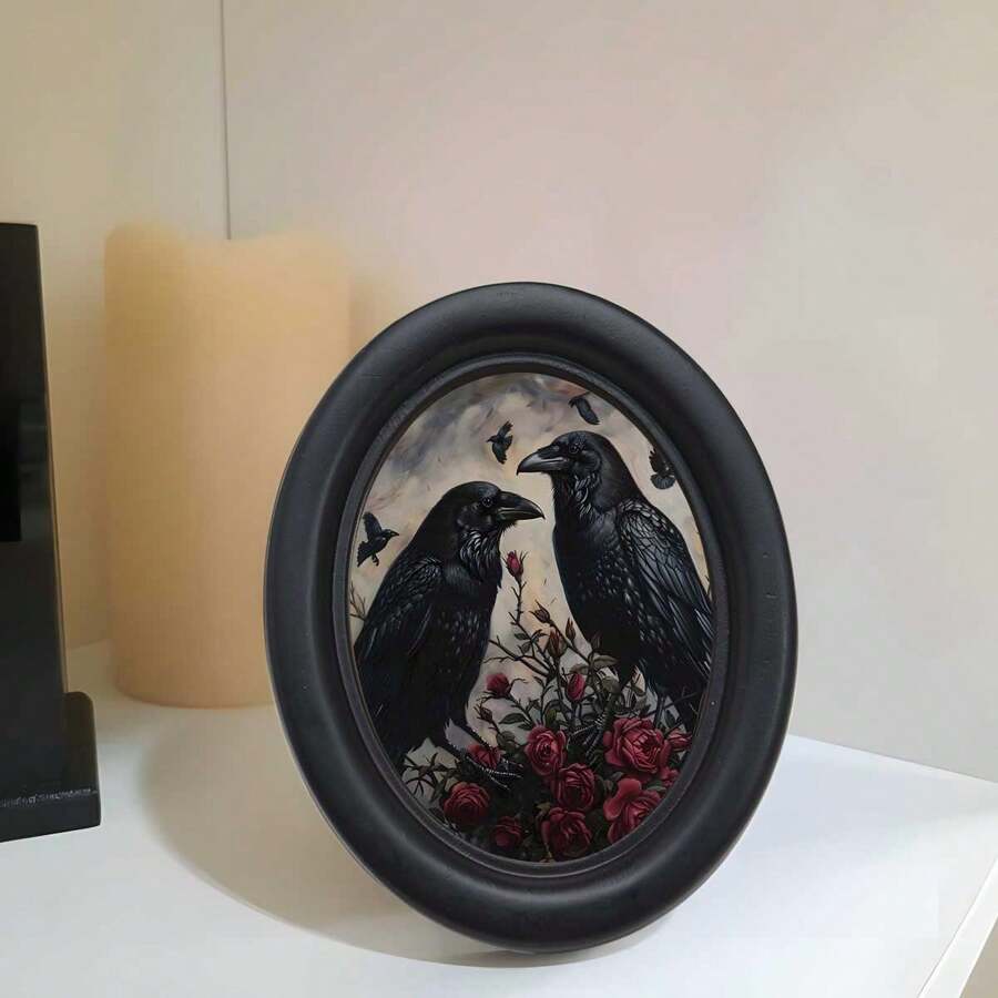 Vintage Two Crows On Rose Wall Art - Handcrafted Wooden Decor, Oval Animal Landscape Sign (5.25x4.16 Inches), Perfect For Halloween, Christmas & Thanksgiving, Christmas Decor