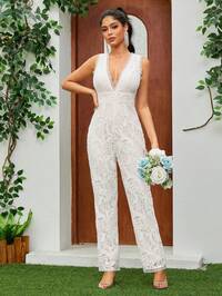 VowaVowa Elegant, Romantic, Fashionable, Sexy, White Color, Lace Fabric, Mesh Patchwork, Fishbone Fashion Single Party Dress, Wedding, Graduation Season, Vacation, Afternoon Tea Outfit, Bridal Gift Dress, Valentine's Day