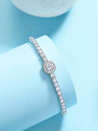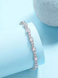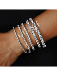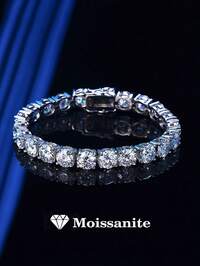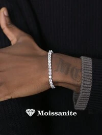 BFCLUB1pc 925 Sterling Silver 6.0mm Moissanite Tennis Bracelet, Unisex Design, High Quality Hiphop 4-Prong Moissanite Tennis Chain S925 Pure Silver Embedded Bracelet, Shiny, Luxury, High-End Exquisite Jewelry, Fashion Gift For Women, Wedding Engagement, Proposal Party, Holiday, Birthday, Valentine's Day, Christmas, New Year