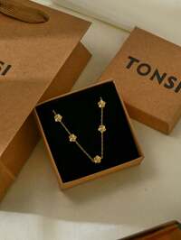 TONSITONSI 1pc Minimalist Elegant Versatile 5-Petal Flower Necklace, 18K Gold Plated Stainless Steel Delicate Chain, Compact Jewelry Gift Box, Great Gift For Yourself, Friends, Sisters, Mothers, Daughters, Colleagues, Wives On Holidays, Birthdays