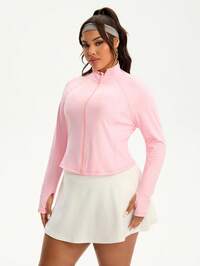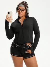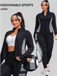 Rhythm Era1pc Plus Size Sports Jacket, Patchwork Gray Casual Yoga Outerwear, Fashionable Women's Clothing For Sports, Cycling, Outdoor, Yoga, With Pockets, Suitable For Spring, Summer, Autumn, Winter