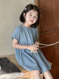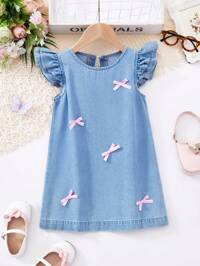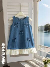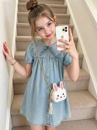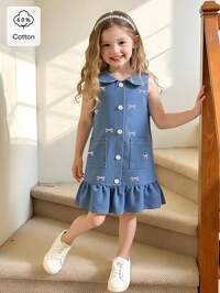 Elladie kidsElladie kids Young Girls' Denim Long Sleeve Dress, Sweet & Cute Casual Vacation Style, College Style Recommended. Denim Washed Light Blue, Handmade White Bow Decor On Front, Collar Design, Fitted Silhouette , Puff Sleeves Sweet & Playful, Suitable For Daily Wear, Beach Vacation Strolling, Or Gathering With Friends, Daily College Style, Making Your Little One Shine In The Crowd, A Must-Have Outfit For Spring And Autumn Seasons Fall Winter #10 Bestseller