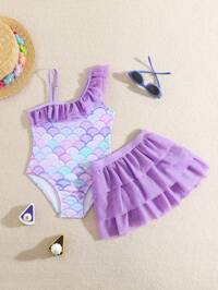 SparklynSparklyn 1pc Young Girl One-Piece Swimsuit New Design. One-Piece Rashguard Design With Skirt, Cute Cartoon Patterns Like Flamingo, Floral, Tropical Leaves And Flowers, Pink Splice, With Zipper, Sweet & Lovely Style, Suitable For Girls And Toddlers To Wear For Swimming, Beach Vacation, Water Park. Long Sleeves And Skirt Design Offer Great Skin Protection, High Quality Fabric Toddler Girl Clothes Set Toddler Girl 5t Toddler Girl Tops #5 Bestseller