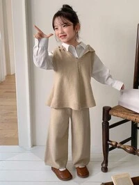 2pcs/Set Young Girls Casual Cute Yellow Floral Pattern Knitted Turtleneck Sweater + Wide Leg Knit Pants Set, Soft & Comfortable, Suitable For Everyday, Outings, Travel, Vacation, Home, Daycare, Kids Play, Autumn/Winter, Christmas, Back To School, Party, All-Match Girls Sweater Sets Kids Two Piece Set Kids Long Sleeve Sets 2pcs Set Toddler Girls Girl Knit Set Girls Pastel Outfit Maija Girls Clothes Color Block T Shirt And Pants Set Two Piece Pants Set Kids