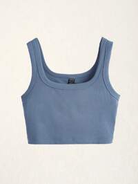 SHEIN BASICS Solid Ribbed Knit Tank Top