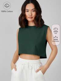 SHEIN BASICS Women Minimalist Solid Color Sleeveless Knitting Top