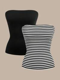 SHEIN BASICS 2pcs Casual Knitted Cropped Cami Tops For Women
