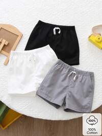 Souflis Souflis 3pcs/Set Baby Boy Solid Color Simple Fashion Casual Shorts, Suitable For Summer Summer Baby Boy Clothes Soft Shorts For Baby Boy Baby Clothes Summer Short For Baby Boy Baby Boy Summer Baby Boys Bottoms