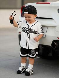 SHEIN Playful Pals Baby Boy Infant Toddler 0-3Y Fashion Streetwear Sports Baseball Hoodie Jacket, Soccer, Basketball Jersey Style Outerwear & Shorts Set, Baby Spring Summer Sports Outfit