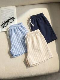 3pcs/Set Infant & Toddler Boys' Casual Khaki Striped Shorts Set, Summer, Black & White Stripe, Solid Color Shorts, Summer Essentials For Daily Wear, Vacation & Outings, Baby Clothes Gender Neutral Baby Boys Outfit,Baby Summer Shorts Baby Boy Shorts Pack 3 Piece Baby Boy Shorts Toddler Striped Shorts Boys Checkered Shorts Baby Boy Striped Shorts Toddler Striped Shorts Baby Boy Plain Shorts