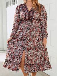 SHEIN LUNE Plus Size Casual Mini Floral Puff Sleeve Split Hem Dress, Autumn Thanksgiving Outfit Women New Years Women Outfit Christmas Dress Women Vacation Outfits Woman Vacation Dress, New Years Women Outfit, Party, Western Wear Women, Chinese New Year Dress, Maternity Photoshoot Dress, Nye Dress, Birthday Outfit Women, Valentine's Day, Cruise Outfits Women, Boho Dress Women, Spring Dress, Resort Wear Women, Club Dress, Tropical Dress, Spring