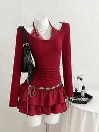 SHEIN MODSHEIN MOD Women's Velvet & Mesh Net Spaghetti Strap Black Dress, Dress, Party Dress, Elegant Dresses For Party, Beach Dress, Vacation Outfits Women, Holiday Dresses For Women, Floral Dress For Women, Red Dress, Birthday Dresses For Women, Dresses For Women Party, Fall Wedding Guest Dress, Date Night Dress,Valentine Outfits