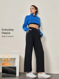 GLOWMODE Cotton-Blend Fleece Relaxed Wide Leg Pants With Pocket Comfortable Warm Fall Winter