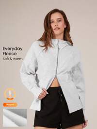 GLOWMODE Cotton-Blend Fleece Ready To Flex Crop Zip Up Long Sleeve Jacket Comfortable Warm Fall Winter