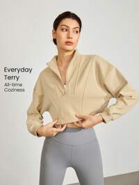 GLOWMODE French Terry Relaxed Comfortable Half Zip Crop Pullover