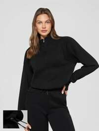 GLOWMODE Modal Silky Smooth Loose Stand-Up Half-Zip Collar Adjustable Drawstring Hem Long Sleeve Sweatshirt With Thumbholes Daily Casual Fall