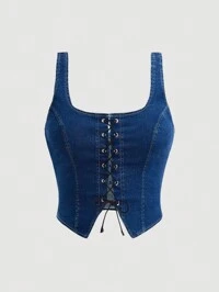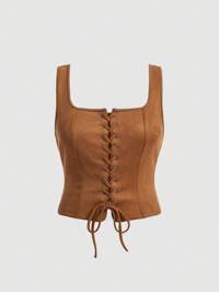 SHEIN MOD Plus Lace Up Front Tank Top,Western Wear Women