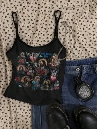 SHEIN EZwear Women's Casual Sexy Jesus Print Cami Top Suitable For Going Out