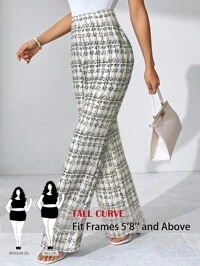 SHEIN Tall CURVE Plus Size Autumn Elegant Women's Plaid Printed Elastic Knitted Pants, Suitable For Various Occasions, Suitable For Autumn Vacation, Elegant Travel, And Daily Commuting Flare Pants Plus Size Plus Size Plaid Pants Tall Plus Size Pants Tall Curvy Pants Plus Size Plus Size Tall Flare Pants,Fall Clothes For Women