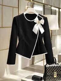 Franclia Plus Size Women Elegant Bow Cuff Long Sleeve Shirt, Asymmetric Hem Design, Versatile Layering Piece, Suitable For Office And Casual Wear