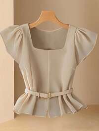 Women's Summer Elegant Solid Color Flowy Cap Sleeve Blouse