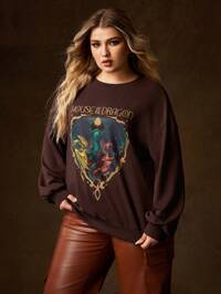 HOUSE OF THE DRAGON X SHEIN Plus Size Dragon And Letter Print Drop Shoulder Sweatshirt