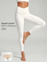 GLOWMODE 24" FeatherFit™ Crossover Leggings With Built-In Underwear Light Support Low Impact Yoga Daily Gym Fall Winter