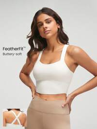 GLOWMODE FeatherFit™ Crossover Straps Curved Hem Sports Bra Tank Top Low Impact Yoga Daily Fall Winter