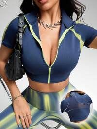 InnovistaInnovista เสื้อออกกำลังกายกระชับรูปร่าง Athletic Essential, เสื้อแจ็คเก็ตฝึกซ้อมกีฬาซับเหงื่อ, เสื้อยืด, Sculpt Zip-Up & Activewear เย็บตะเข็บแบบสตรีมไลน์, เสื้อออกกำลังกายยืดหยุ่นน้ำหนักเบาและระบายอากาศได้ดี, เสื้อครอป Dry-Fit, เสื้อสเวตเตอร์, เสื้อยืดเจอร์ซีย์, เสื้อกล้ามแขนสั้นป้องกัน UV, สีฟ้า, สีเหลือง, ยกน้ำหนัก, ชุดเสริมสร้างความแข็งแกร่งของร่างกาย, ดัมเบล, กลางแจ้ง, ปั่นจักรยาน, นักปั่น, วิ่ง สไตล์ใหม่ฤดูใบไม้ร่วง ผู้หญิง รายละเอียดซิป, บล็อกสี, Utilitarian Chic