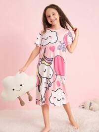SHEIN Leap Crew Tween Girl Cartoon & Letter Graphic Lounge Dress