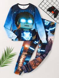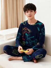 2pcs/Set Boys' Video Game Print Long Sleeve Pajama Set