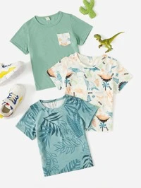 SHEIN Young Boy 3pcs Letter & Dinosaur Print Tee