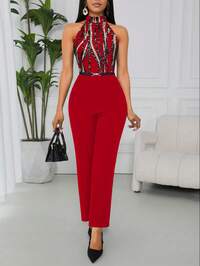 Lyxana Women's Elegant Printed Halter Jumpsuit