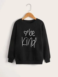 SHEIN Tween Girl Casual Round Neck Long Sleeve Letter Print Sweatshirt, Suitable For Autumn And Winter