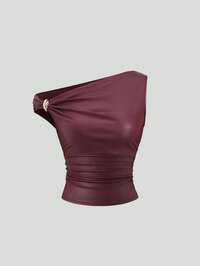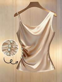 FrancliaFranclia Women's Solid Champagne-Colored Satin Satin Asymmetrical Halter Neck Faux Pearl Waist Pleated Fashion Vestwinter Clothes For Women,Summer,Spring,Valentine's Day,Valentines Day Outfit,Carnival,Beach,Party,Birthday,Gym,Going Out,Elegant,Vacation,Casual,Y30k,Graduation Season Attire, Fashionable Casual Commuter Wear, Business Office Wear, Versatile And Stylish Everyday Casual Wear, Urban Teacher's Professional Attire