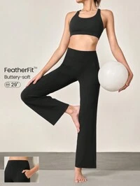 GLOWMODE 31" FeatherFit™ High-Rise Flared Leggings Pants Low Impact Yoga Daily Fall Winter
