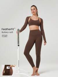 GLOWMODE 24" FeatherFit™ Crossover Yoga Leggings Buttery Soft High Stretch Crossover Waist Sports Tights Gym Fall Winter