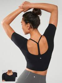 GLOWMODE FeatherFit™ Slim Cropped Length Contour U Back Tee Low Impact Yoga Daily Baby Tee