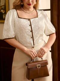 Vintamour Plus Size Vintage Elegant Women's T-Shirt Top Knit Jacquard Square Neck Casual Cardigan Vacation Outfits Woman Summer Outfits For Women White Top Summer Tops Western Wear Women Birthday Outfits For Women Going Out Tops Women Summer Tops Women White Shirt Church Clothes Women Summer Clothes Women Cute Tops Cruise Attire Office Wear Women Women Shirts White Outfits For Women Button Up Shirt Women Work Clothes Women Spring Outfits For Women