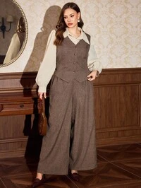Vintamour Plus Size Women Retro Elegant Plaid Belted Pocketed Double-Breasted Sleeveless Casual/Work/Holiday Dress Clothes For Women Christmas Outfit For Women Christmas Clothes For Women Dress Women Christmas Dress New Year Dress Elegant Dresses For Women Brown Dress Thanksgiving Outfit For Women New Year Clothes New Year Outfit New Year Women's Clothes School Spring