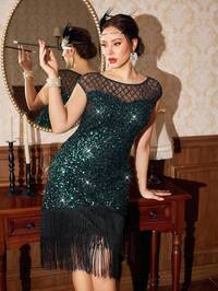 Vintamour Plus-Size Elegant Ladies' Dress, Gorgeous Sequined Dress, Retro Dress, Gatsby Dress, Black Tassel Dress, Elegant Party Ladies' Dress
