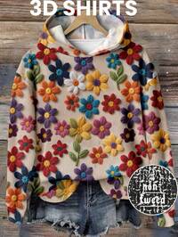 SHEIN LUNE Women's Casual Retro Floral Print Sweatshirt, Suitable For Autumn/Winter, 3D Floral Print, Vintage, Autumn Plus Size Sweatshirts Women Sweater For Women Women Sweatshirt Cute Sweatshirts